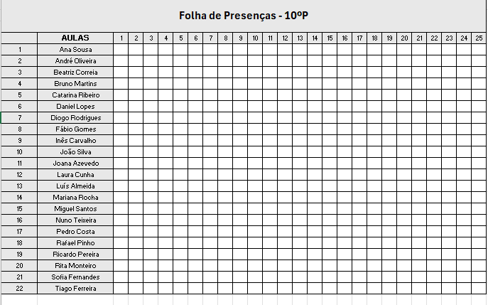 Consiste no registo da assiduidade dos alunos, permitindo ao professor acompanhar a participação nas aulas e cumprir os procedimentos administrativos da disciplina.